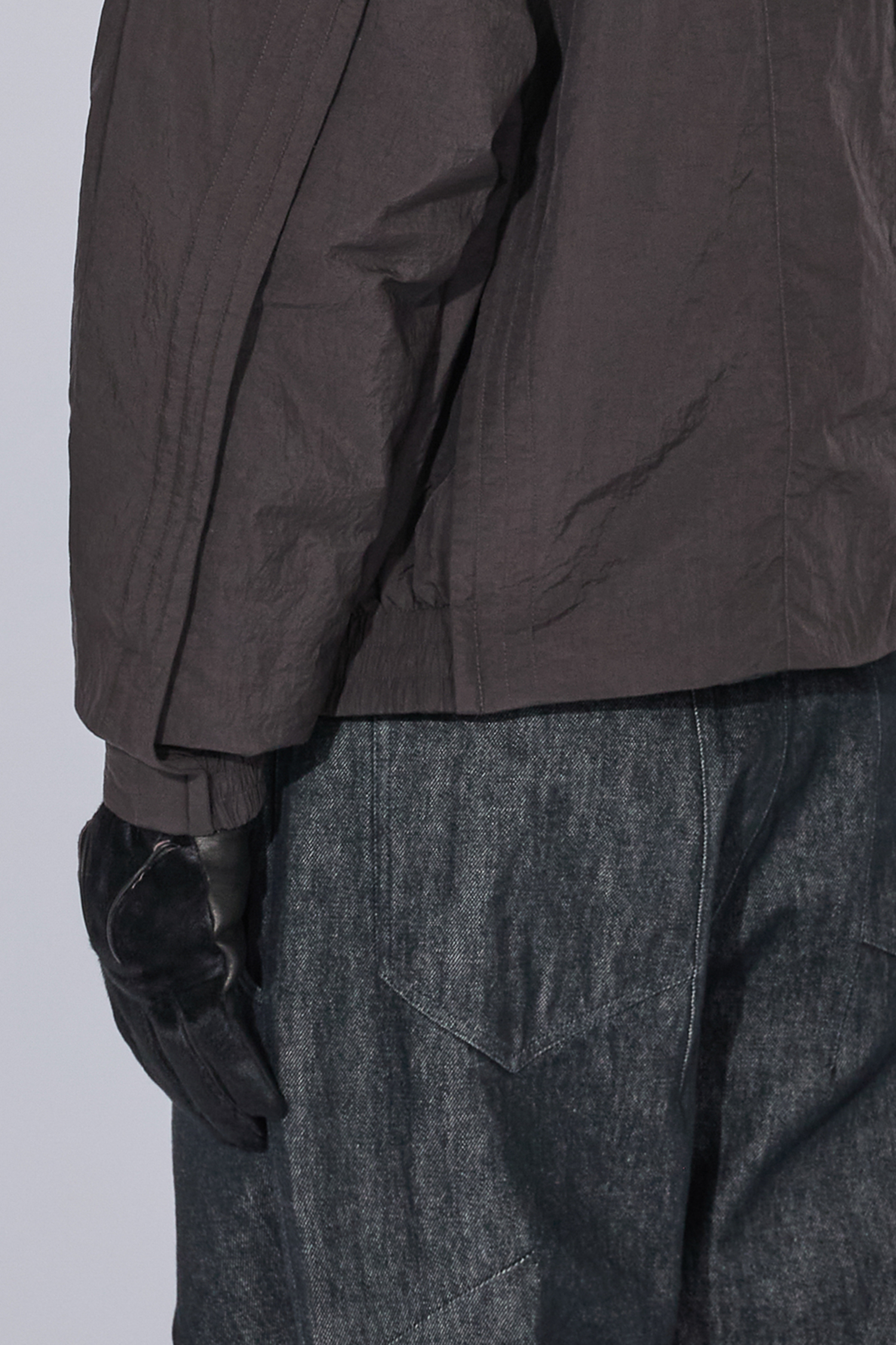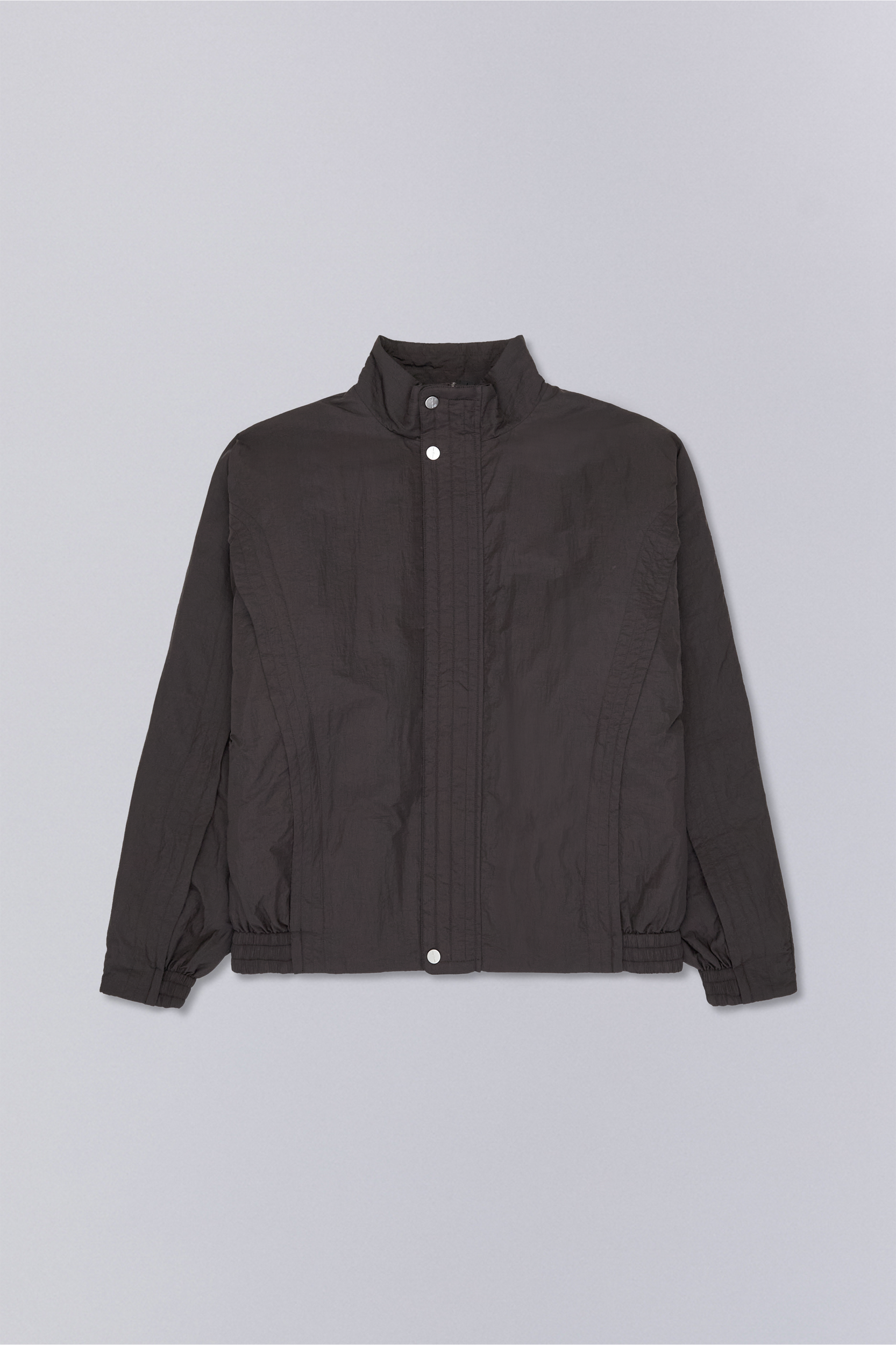 Crafted from lightweight crushed nylon, the Yot Jacket features a wadded silhouette that merges warmth with structured form. Overlapping ‘fins’ frame side-entry pockets, while elasticated detailing at the cuffs and waist refines the jacket’s shape. Twin stud detailing accents the back neck.