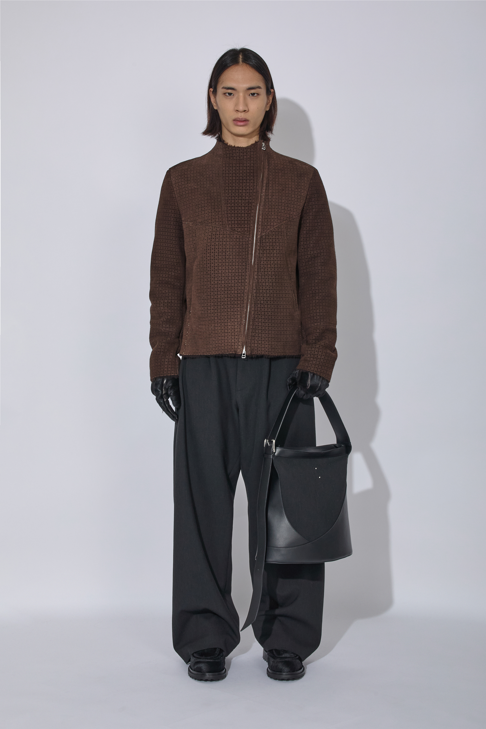 Crafted from custom perforated suede, the Roland Jacket features an asymmetrical zip and side-entry pockets. Precision detailing highlights J.L-A.L’s first shearling design, offering a distinctive yet refined silhouette.