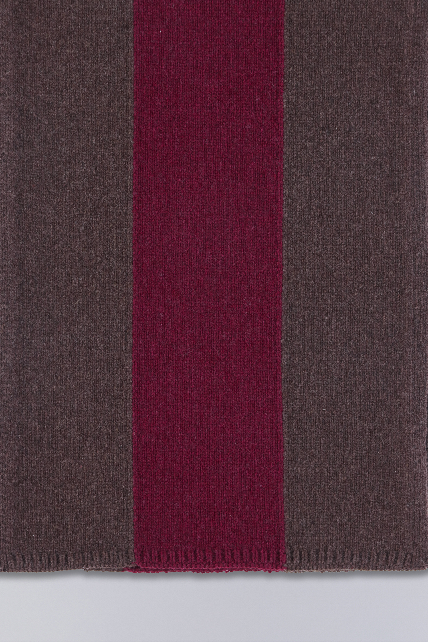 Crafted from wool yarn, the Terr Scarf features a contrast stripe and central slit, allowing it to be passed through itself for versatile styling and insulation.