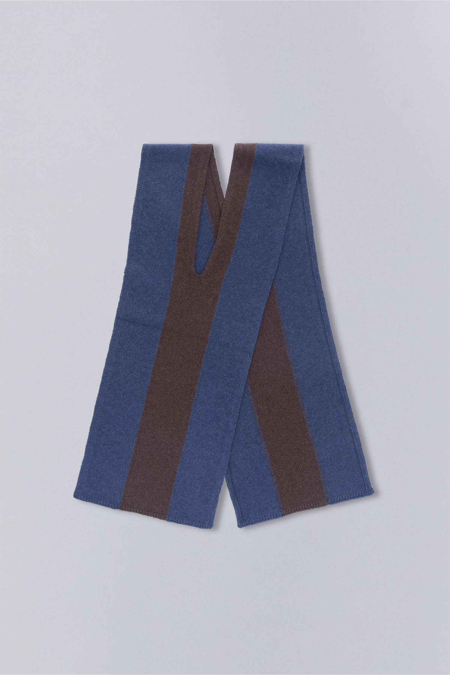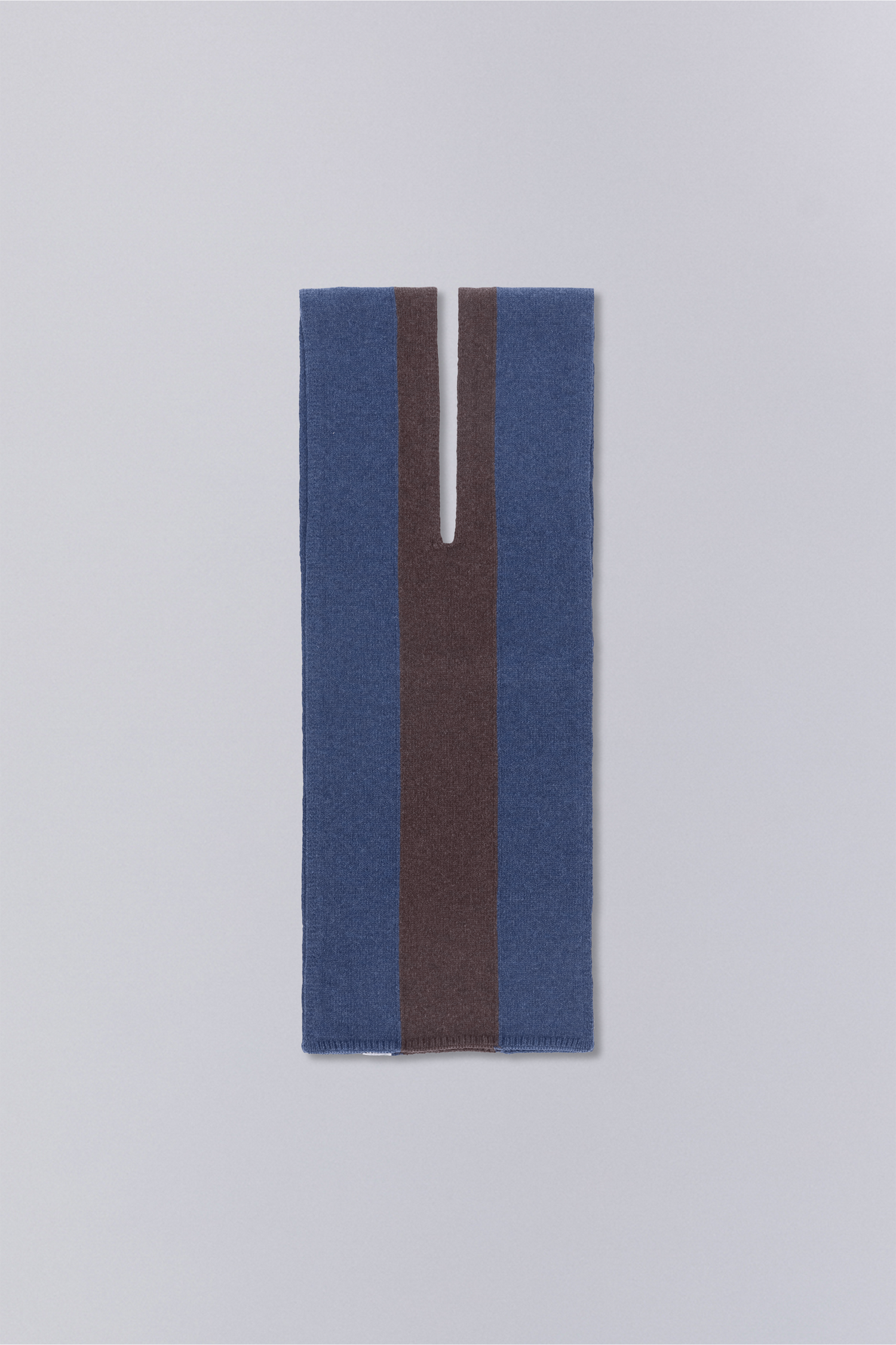 Crafted from wool yarn, the Terr Scarf features a contrast stripe and central slit, allowing it to be passed through itself for versatile styling and insulation.